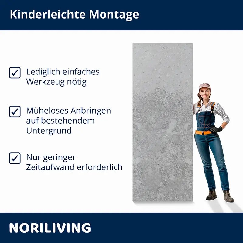 - Weniger Staub, Lärm, Schmutz und Abfall im Vergleich zur herkömmlichen Fliesenverlegung